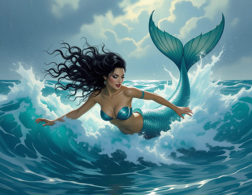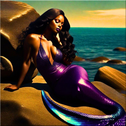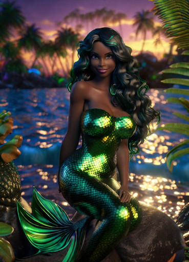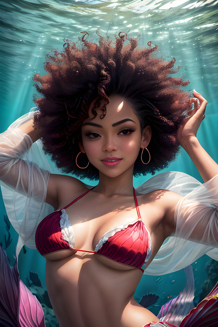 A beautiful red-tailed mermaid welcomes you to her tropical lagoon.Created with Stable Diffusion using the Dreamshaper model.