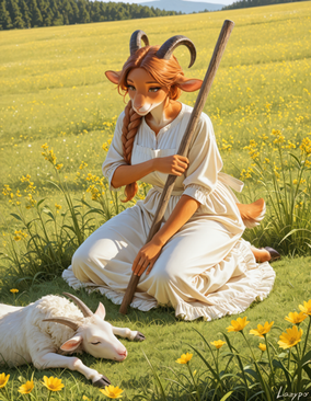 #anthrofemale #furryanthro #hills #satyress #sheep #shepherd #aiart #goat_girl #furry_female #realistic_anime #ai_generated #stablediffusion