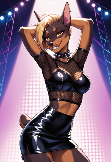 #fanart #doggirl #nightclub #spotlight #realisticanime #aiart #doggirltransformation #furry_anthro #dobermangirl #furry_female #sexy_furry_female #ai_generated #stable_diffusion