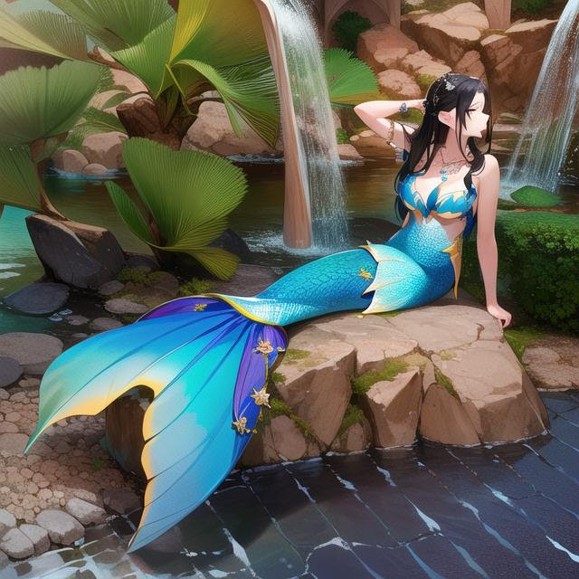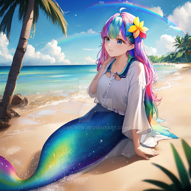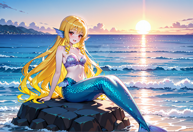 This little mermaid doesn't seem too happy to be out of the water. At least she has a sunshade.Created in PAI-Counterfeit on PIxAI.
