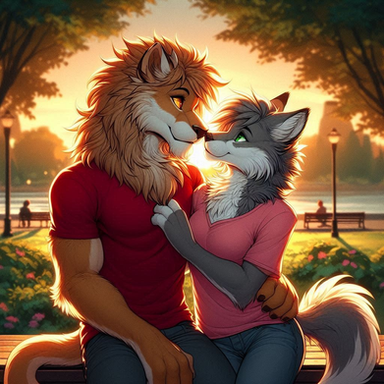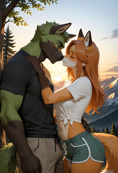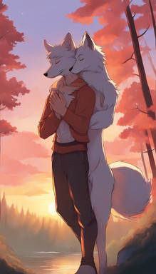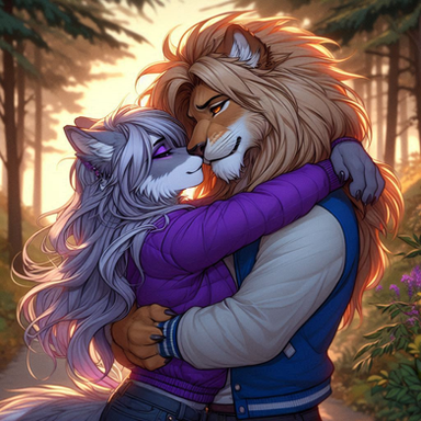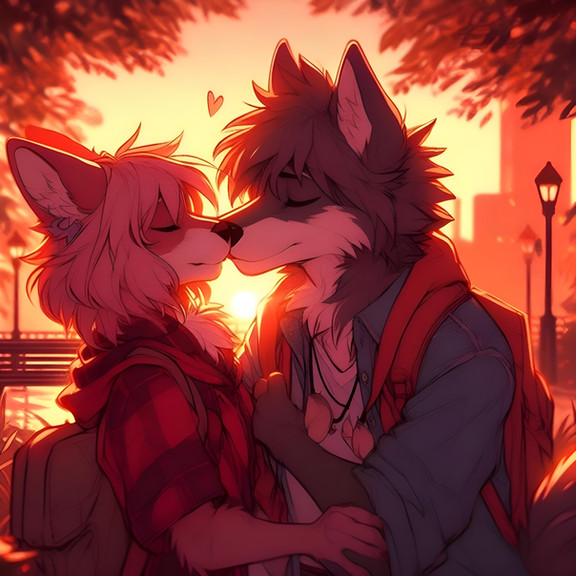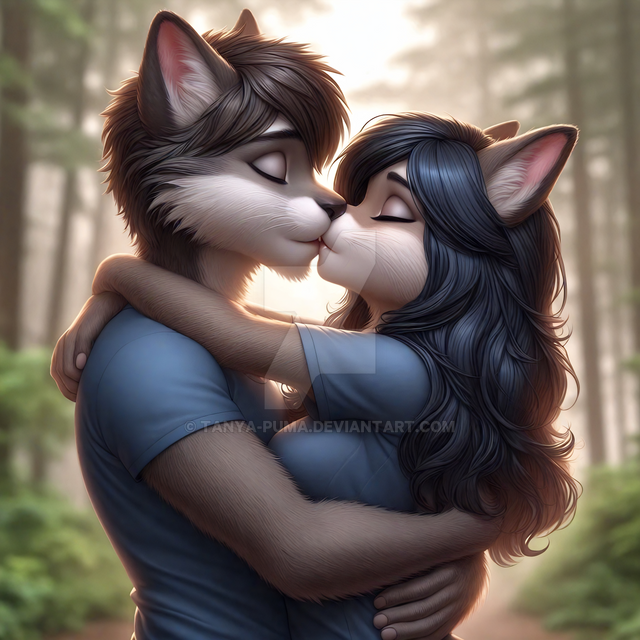 #anthrowolf #furryanthro #kiss #spring #valentinesday #wolfgirl #woodsforest #coupleromance #realisticanime #aiart #furrycouple #wolf_man #ai_generated #stable_diffusion