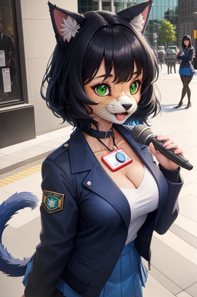 #catgirl #feline #animestyle #anthrofemale #cateyes #furryanthro #furryfemale #prettygirl #reporter #aiart #ai_generated #stablediffusion