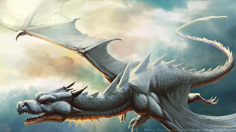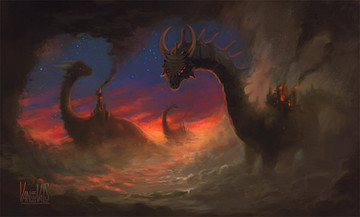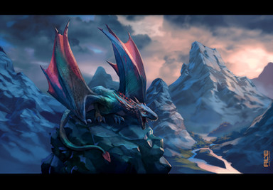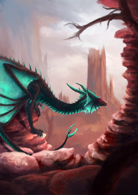 However, the picture's since of depth and distance could have been better. I didn't realize until I read your summary that the dragon was on a high cliff. Initially I thought it was a giant dragon filling up the valley. Also, the cliff itself is hard to notice as it blends in with the darks of the rest of the picture and the dragon's left wing hides most of the key-part of the ledge.