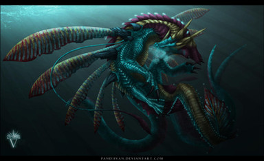 WOW! This is a really awesome design for a dragon! I love the idea of bioluminescence on a dragon, especially the sea type, and the sinuous motion is great for this design. I really enjoy this! The black is a great contrast with the bright, rainbow colors. Dat radiance.
