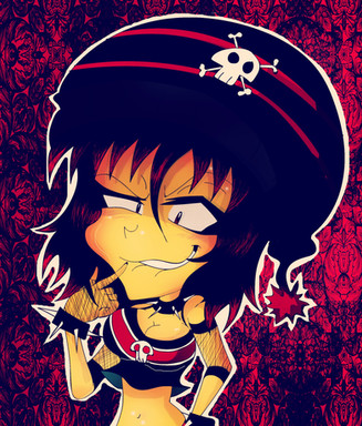 She's got a great expression, and I love the textures on her face and in her outfit! Is that a gun behind her? At first I wasn't sure what kind of object it was.Β