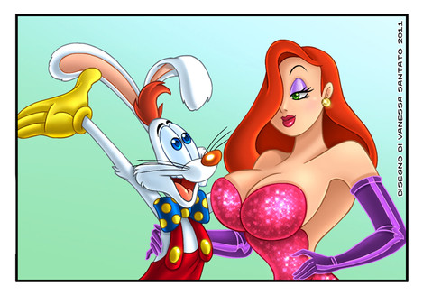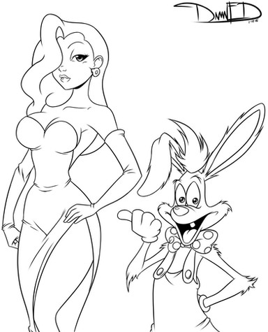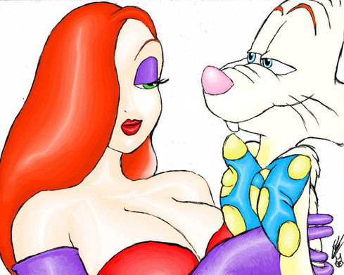 Inchiostrati con Flash per riprendere un pò la mano. Roger mi viene meglio di Bugs BunnyLa scena è stata ripresa da uno screen capture del film, ma ho modificato le braccia di Roger. Mi piace come ho disegnato le labbra a Jessica. Secondo me sono la coppia più bella e ben riuscita della storia dell'animazione, anche di Homer e Marge...