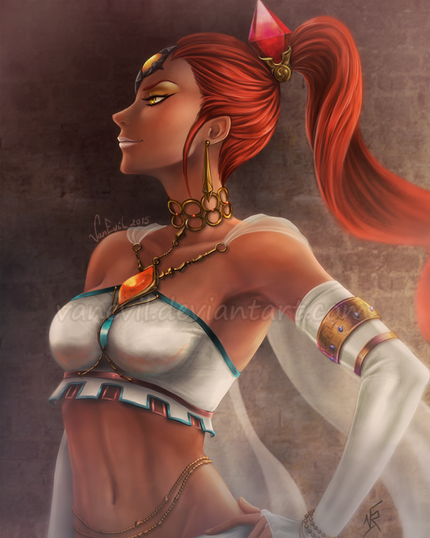 This is a stunning portrait! I love your attention to details like her eyelashes and the lines on her tiara/headdress/charm thingy. The starkness of the background reflects the buildings of the Twili and allow the color of her eyes and hair to really pop. Excellent job!