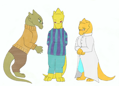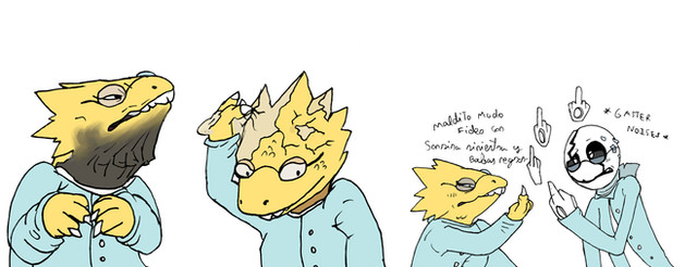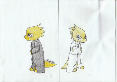 Next up for this little series: Alphys.While I already drew Swap a few times, it is some sorta premiere for Fell and Tale. Especially Fell. That one's a weirdo