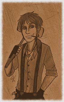 Going on with the first few colours. Again the way you work here pretends on your equipment. I had to use two diffrent colour types here. Copics for eyes and skarf and - since my usual used copic for Pans' hoodie rests in potatos once again (these damn things die so soon) I had to use two diffrent shades of Farber Castell- Pitts here. That is some sort of waterproofed Indian Ink. Awesome little buggers they have a way better capacity than the copics. The best alternative I found so far. This tactic I used here btw works quite good aswell if you use coloured pencils. Start at the parts where the clothing folds the most and the most shadows are cast. With a coloured pencil you would now work you way to the brighter parts while reducing the pressure of your pencil. Since I have my ink though, I work out the shaddows with the darker colour-