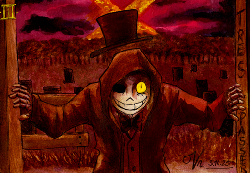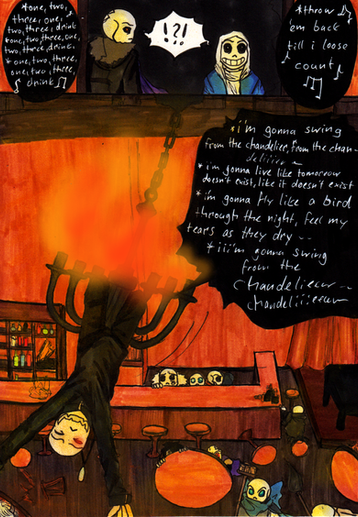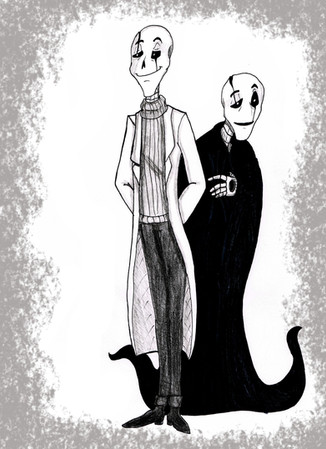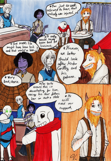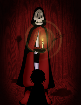 *You can only see the figures hollow, red eyes gacing at the Bars Papyrus, who heads to the guest imidiatly - with his usual welcome smile however. After a little chat they hand Papyrus the package and leave.