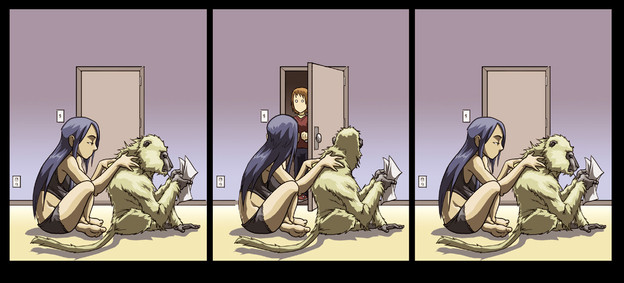 Congratulations and I wish you many more pageviews to come X] . I love the expressions in this pic. I really like the subtleness of the background too, it just stands out to me....in a good background way... now I'm just getting confusing...it's late I should go to bed.