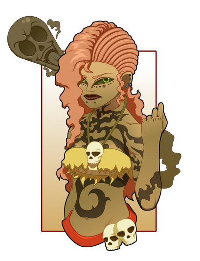 What type of snake is that? Dig the horns...so what do you call a voodoo priestess like Gogo is in this pic?