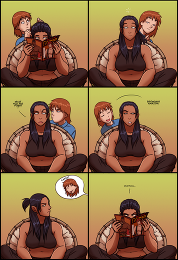 THis is a REALLY interesting take on the mythology there; Gogo is a natural giant monster girl, and its utterly fantastic to see Didi getting in on the big awesome woman action The fact that they're joined at the hip is a nice reference to their origins, and reminds me of the curious bodies a lot of giants had in these myths.