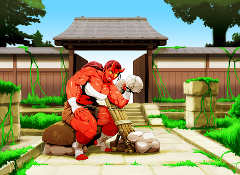 I like the little details you've added like the carvings in the wood. Is the particular rune that Gogo is holding significant? Ever thought about animating a little of Bomango? I think your drawing style would lend itself well to ze moving pictures. Reminds me a little of Wakfu :3 Anyhow, keep it coming!! : D