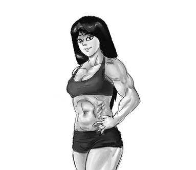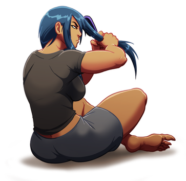 Not a big fan of how the hands fit around her waist. Doesn't seem like a natural pose, and almost makes it seem as if she's trying to be two dimensional. That, and her forearms are MASSIVE compared to he wrists. Otherwise I dig it. It's a different kind of shading style from you Van. Keep at it!