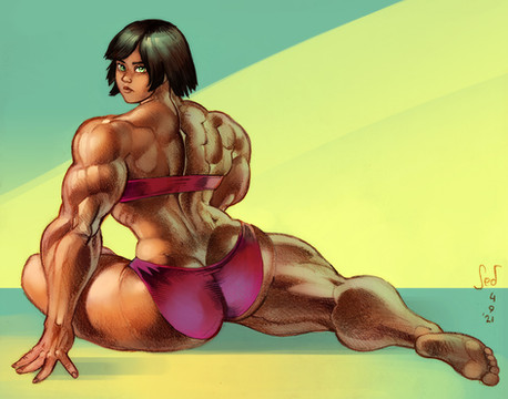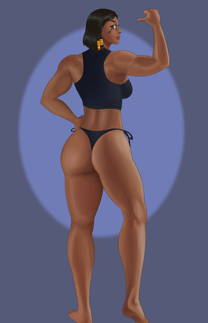 Dang that is a lovely view of her back!Β The play of light over her muscles and curves is really nice, and I love the attitude conveyed in her stance and expression.Β Would be my new wallpaper in a heartbeat if the sizes were more synched.Β Gogo seems like she'd make for a good motivational desktop subject.