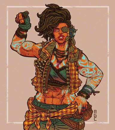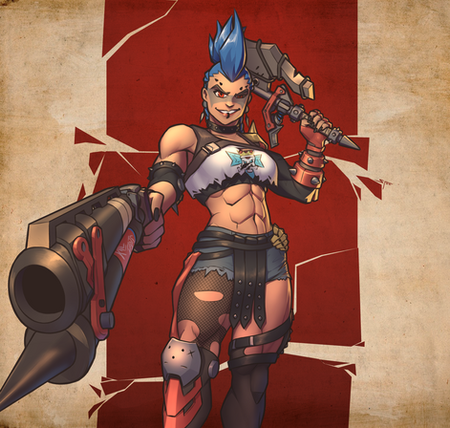 She looks sick! Love her hair and that sick weapon on her right hand.