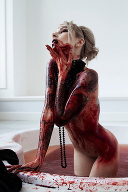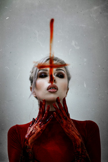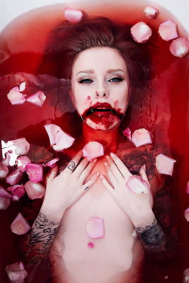 #blonde #blood #goth #gothic #lingerie #makeup #portrait #red #vampire