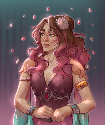 #demeter #dress #flowers #girl #gold #oc #pinup #woman #cleavage #greekgoddess #greekmythology #originalcharacter #shorthair