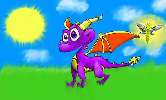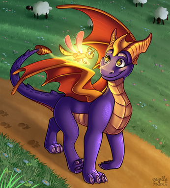 Spyro looks so cute there and I love how Sparx is sitting on the rock