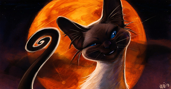 Reminds of Si and Am from Lady and the Tramp...if they were spooky hellspawn cats. Really well done!