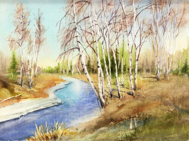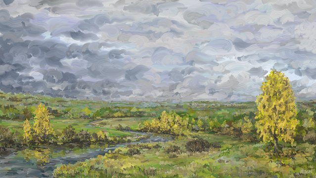#digitalpainting #digitalart #sky #birches #branches #clearsky #clouds #earlyspring #ice #landscape #painting #snow #spring #procrate