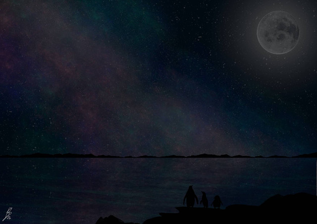 #birds #digitalpainting #island #koala #monochrome #moon #moonlight #ocean #silhouette #trees #animalsplantsnature #art #vanndra