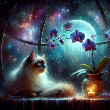 #cat #digitalart #animal #kitty #animalart #blueeyes #moon #moonlight #photomanipulation #photoshop #plant #whitecat #window