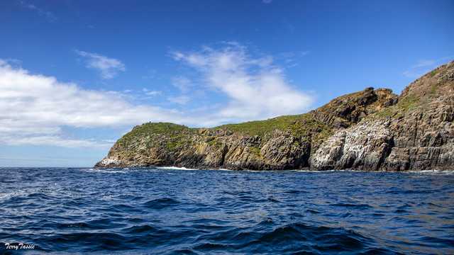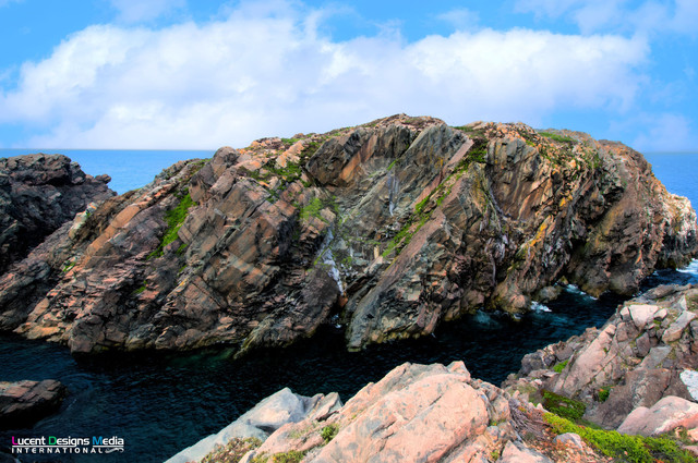 These rocks are found off the Island where we live. I was able to photograph them on a boating trip with our son. It was a beautiful day. Hope you enjoy the photo which I have made into a wallpaper size. Thank you for any faves and/or comments.I used my Panasonic Lumix z200.