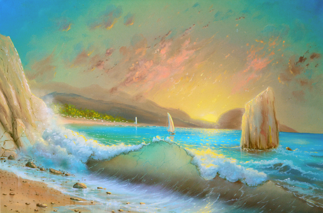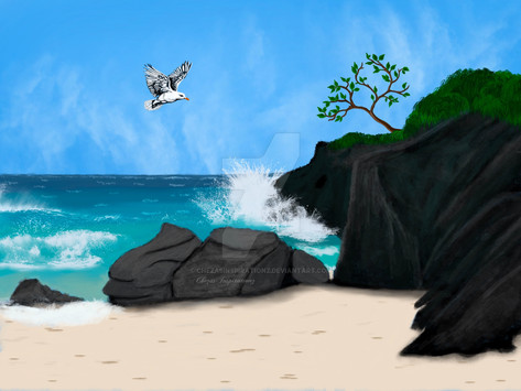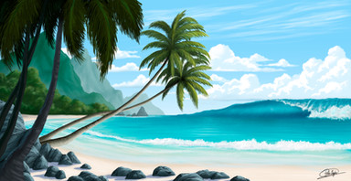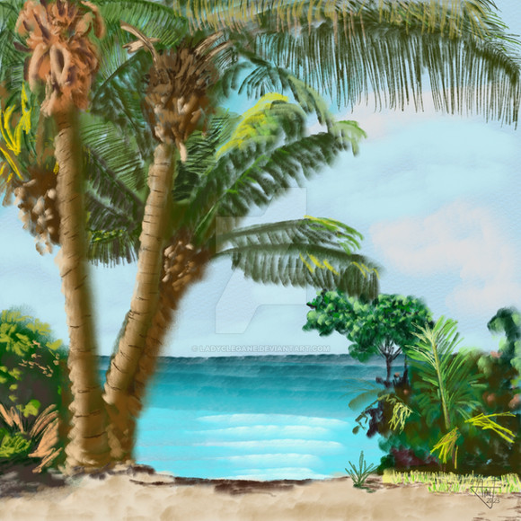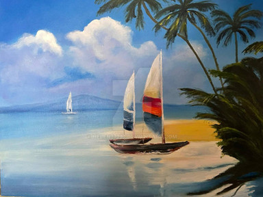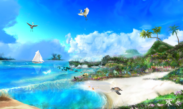 #beach #digitalart #digitalpainting #ocean #painting #palms #photoshop #rocks #sailboat #sand #sea #trees #yacht