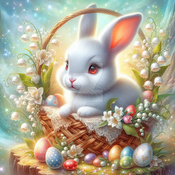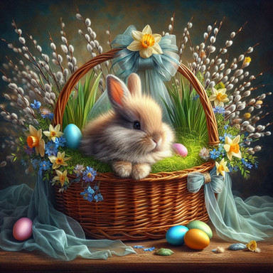 #basket #beautiful #bunny #easter #eggs #fantasy #flowers #nature #pretty #rabbit #spring #vanndra #photomanipulation