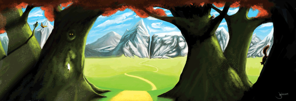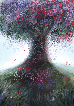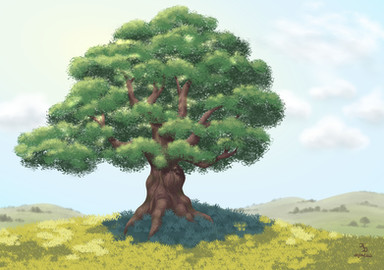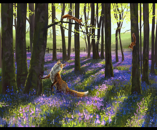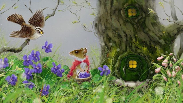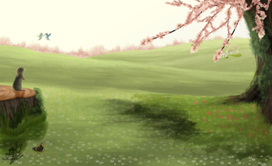 #clouds #flowers #grass #mountains #spring #squirrel #tree #vanndra #digitalart #digitalpainting