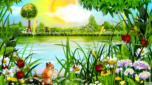 #clouds #flowers #grass #mountains #spring #squirrel #tree #vanndra #digitalart #digitalpainting