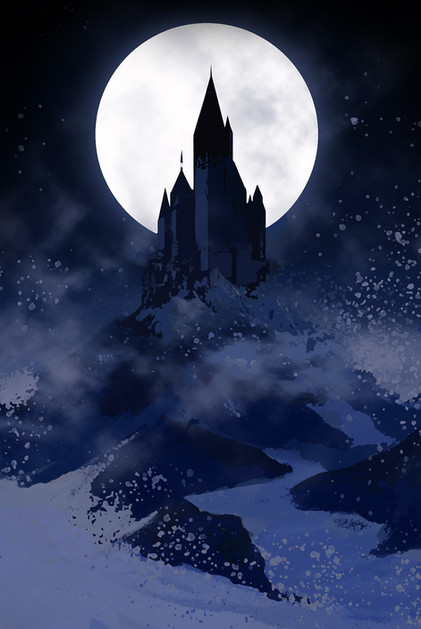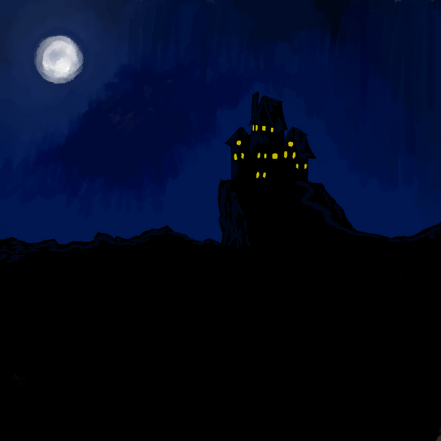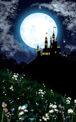 #bats #castle #fanatsy #moon #mountains #night #rabbit #trees #illustration