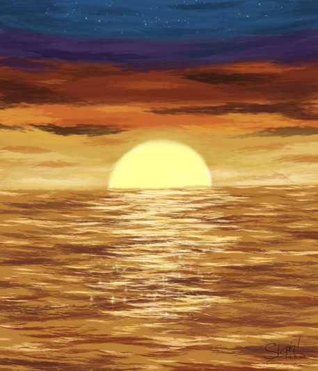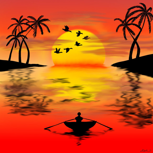 #golden #kangaroo #moonrise #ocean #sailboat #sunrise #trees #yacht #vanndra #digitalpainting