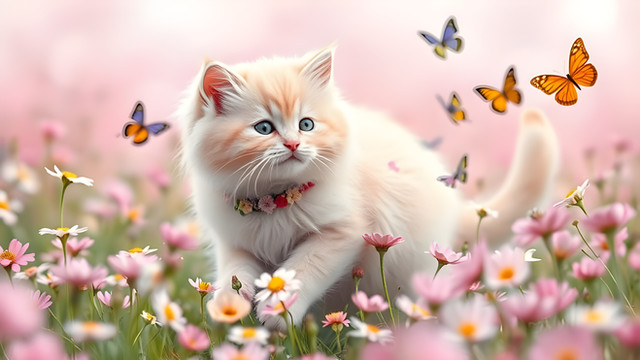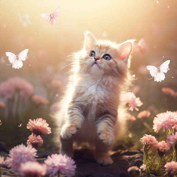 #butterflies #cute #cyclamen #flower #kitten #vanndra #butterfly #photomanipulation