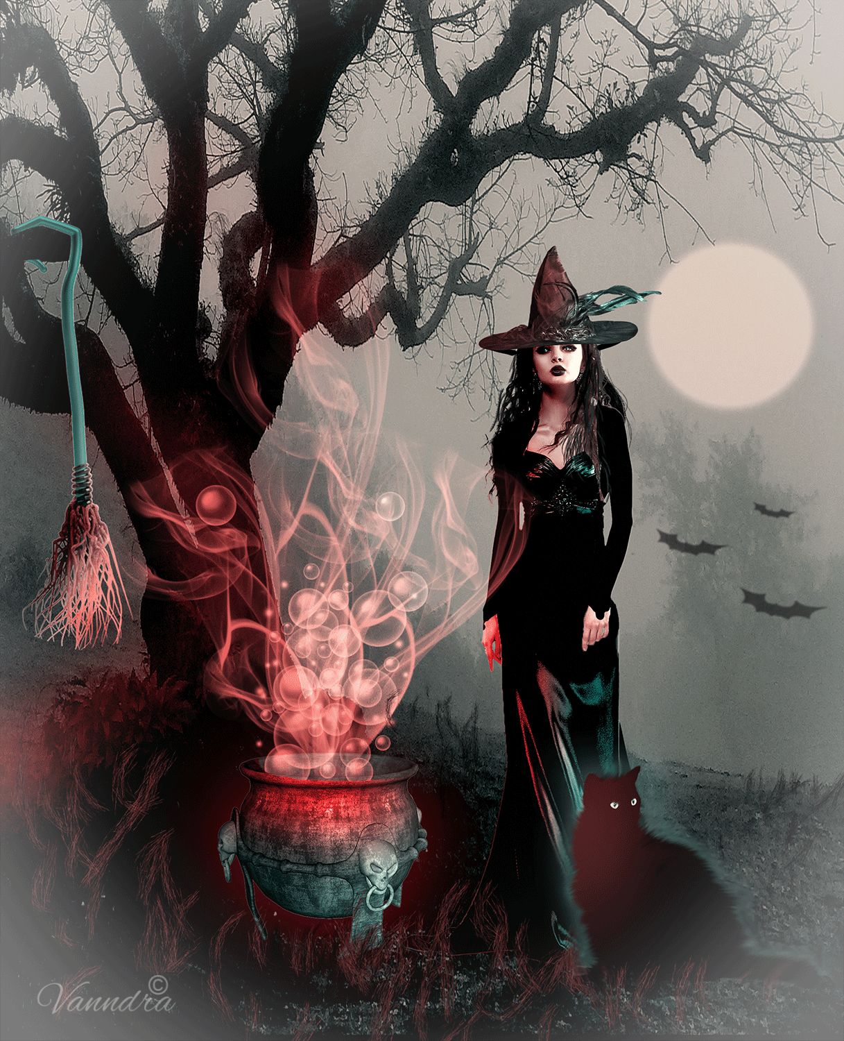 #bats #dark #halloween #pumpkins #spooky #witches #vanndra #artrage
