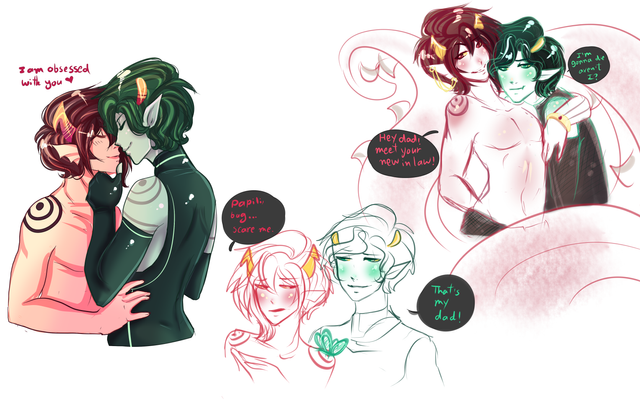 hehe, czegoś takiego nigdy nie było. Oni tylko raz zamienili 2 zdania przez cały homestuck ; D Anyway. Przeczytaj intermission między 3 i 4 aktem. Link masz przy moim poprzednim rysku. Ale pewno zauważyłaś.