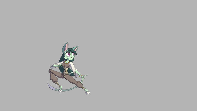 The tail swaying, and sleeve movements are nice li'l details in the animation. Very great work. The subtle humorous moments, and facial expressions are nice too. The movements are very fluid. Very great work.