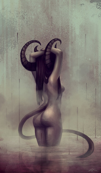 Hmmmm .. nice work on setting the atmosphere and lighting here .. makes her even creepier .. and i can understand why you are so fond of the tail .. you painted it so well it looks almost 3D .. like it's gonna move at any second and poke the viewer XD