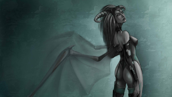 this is how I imagined it my friend ... she's not a vampire.. she's a demon... and I'd like to keep the devilish qualities becoz of it's association with the myths...