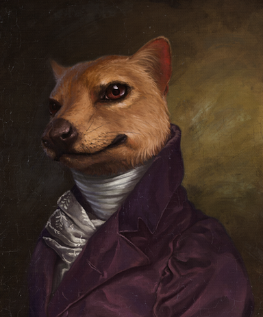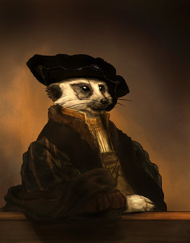 I wanted to capture the look and feel of a classical painting, specifically along the lines of Rembrandt's work. I couldn't manage the richness of an oil painting digitally, but I hope that some sense of richness is conveyed. This charming opossum belongs to Loiosh. The sumptuous couch is mostly of my own design, a few bits inspired from the Handbook of Ornamental Motifs.Related content