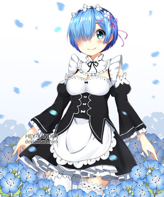 #anime #apron #background #black #blue #flower #idk #maid #manga #outfit #rem #ribbon #stockings #tea #window #huksly #re_zero_kara_hajimeru_isekai_seikatsu