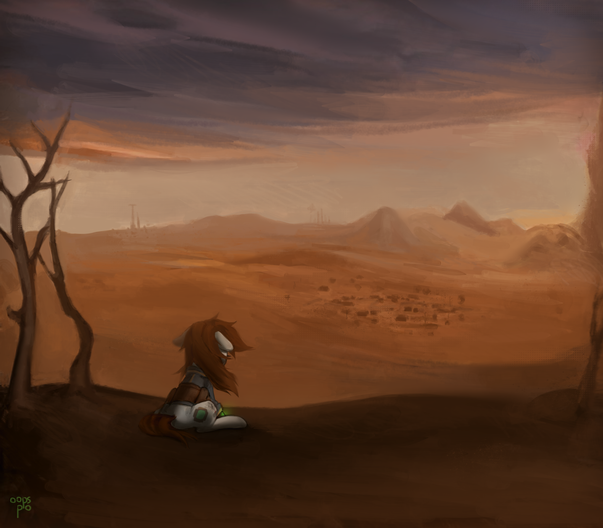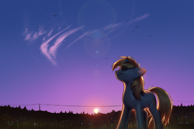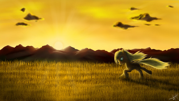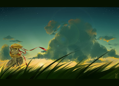 This is a really great piece and very well done. I live in the southwest and this is kind of familiar to me. Watching the sunset over the plain. I really like it and think that it resonates extremely well with applejack. Great work!