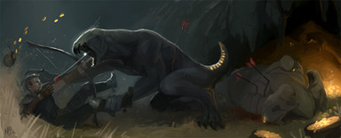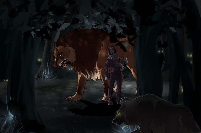 I like how you made the dogs werewolves, that's really clever! I especially love your style. Something about it is almost haunting in a way.