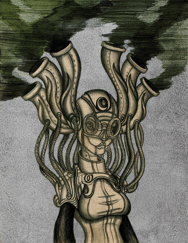 Ohh, reminds me of Giger. Which means I automatically love it. But this is very unique from his art still - his is much more bionic, and this is more mechanical.
