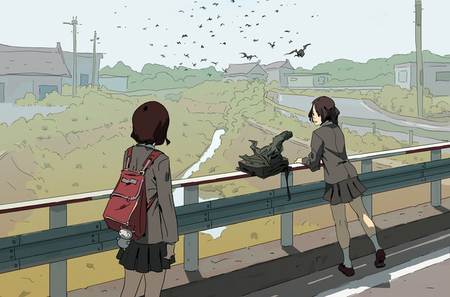 #anime #drawing #girls #robot #rural