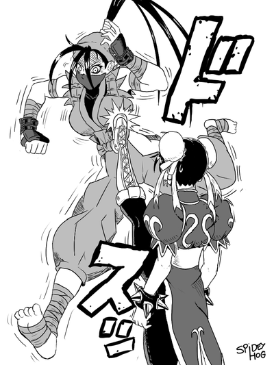 Weekend’s been going well. Bit of sparring, followed by pizza and some hokey Hong Kong action movies (Chun-Li’s idea, funny enough), but the next morning it was back to business…Commission for , who wanted a continuation of sorts to my sample Cammy Vs Chun-Li series, so we’re jumping right back into the action!