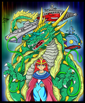 Before I got into Transformers, I was pretty much introduced into the world of giant robots by way of Gaiking, particularly the Force Five movie compilation. A newer version was released a few years ago, with much better art and animation, but with a completely new cast. As much as I love the newer series, there wasn't anyone in the female cast who could hold a candle to Midori Fujiyama (aka Nebula in the English dub).Daiku Maryu (Great Space Dragon) kept most of its design consistent between the two series. There's a certain amount of awesome in a flying battle fortress that's in the form of a giant metal dragon. For this piece, I took liberties in giving it a design of my own, largely keeping most of the classic elements in place, while adding a lot more articulation to the wings and armor.