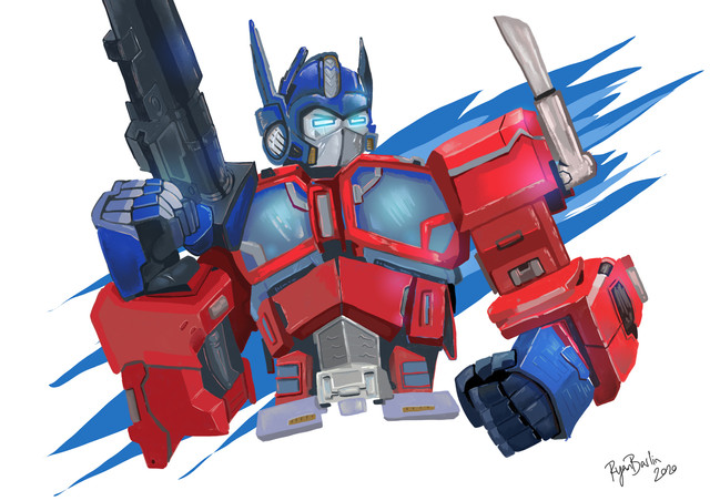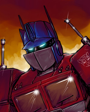 Everyone's favorite big red truck... or monkey... or...Digitally painting mecha is tough, and much respect goes out to anyone who finds it easy! I was inspired to give Prime a try after seeing some really wicked Megaman boss art done over in YouTube, along with the fact that I needed to practice drawing Prime, and painting mechanicals in general.